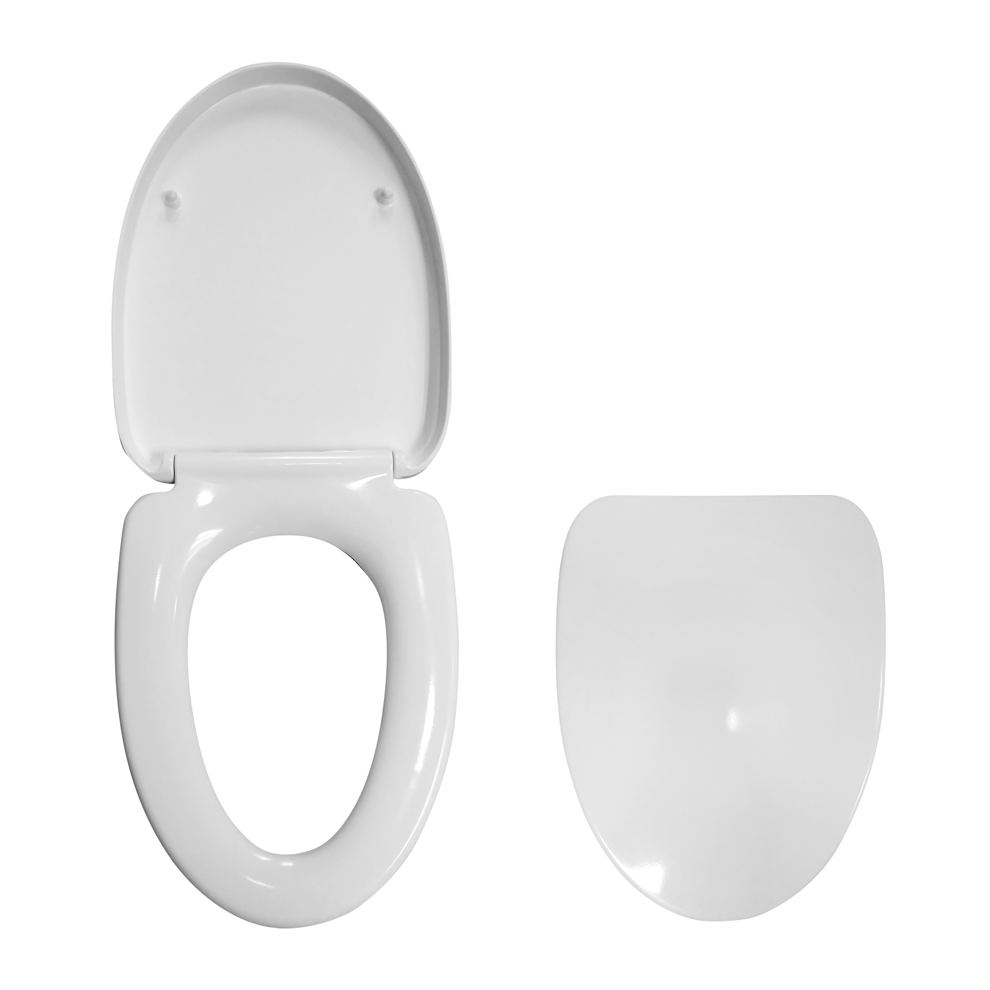 Asiento de aro elongado fabricado en Urea, con tecnología de Cierre Suave y sistema Click Off desmontable. De fácil limpieza, larga durabilidad e instalación superior con pernos de anclaje y tarugos de expansión.