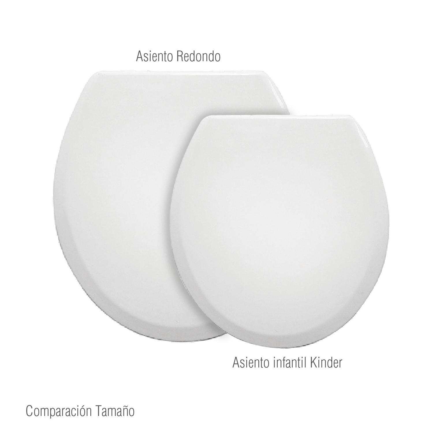 Asiento de formato especial, diseñado para sanitario de formato infantil Kinder. Fabricado en Polipropileno de alta resistencia, con bisagras fijas para mayor seguridad y con protección antimicrobial Duraguard