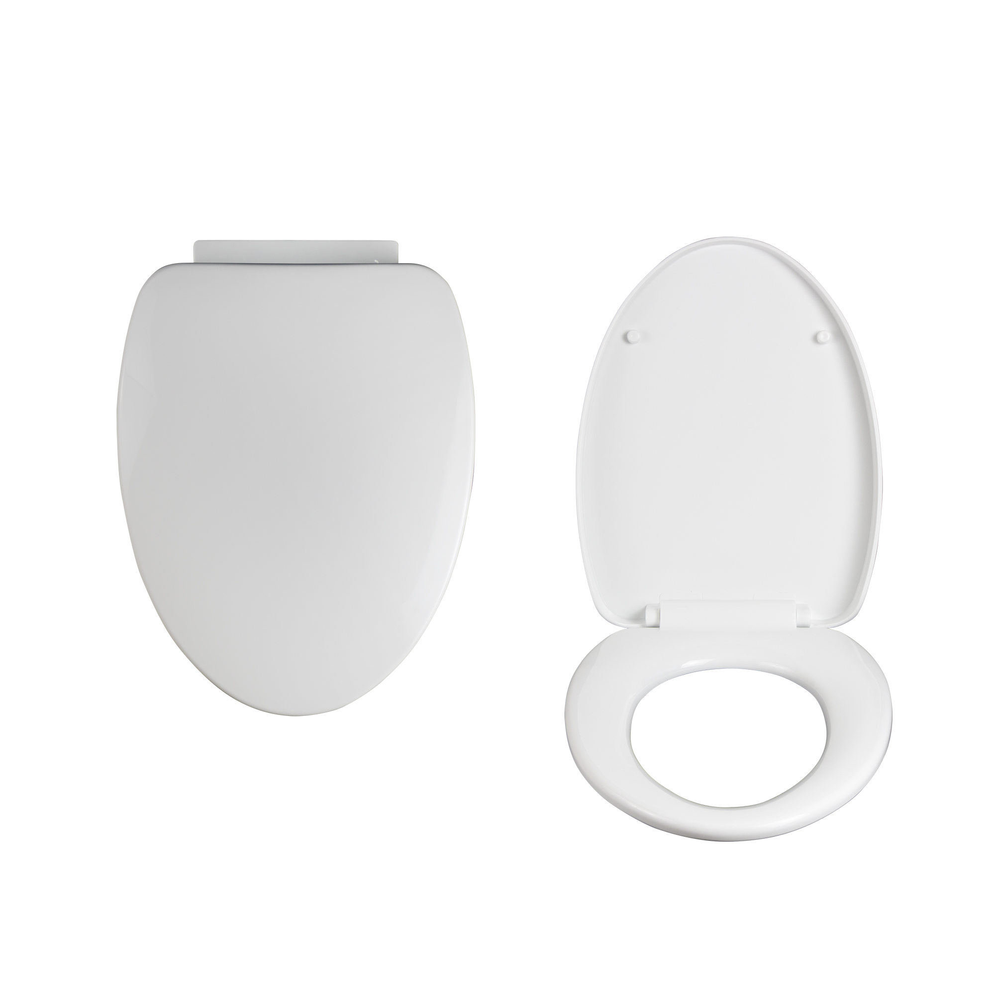 Asiento de aro elongado para One Piece Lampa, con diseño envolvente, bisagras plásticas ajustables y sistema de cierre suave. Fabricado en polipropileno resistente para mayor durabilidad y confort.