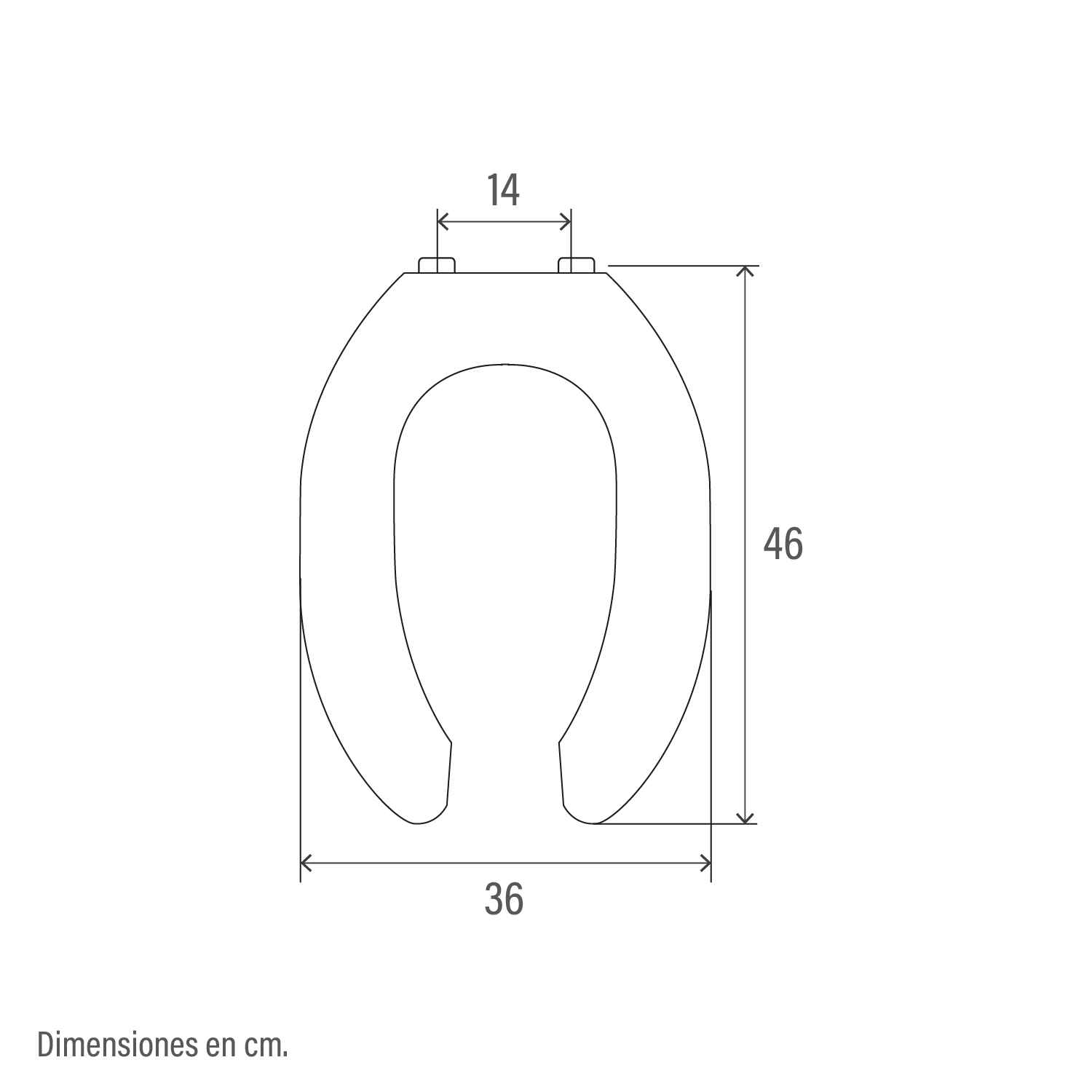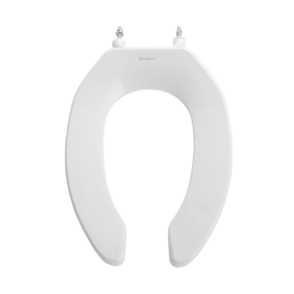 Asiento de aro elongado abierto, diseñado especialmente para sanitarios destinados para alto tráfico o personas con movilidad reducida. De fácil limpieza, larga durabilidad y fabricado en polipropileno resistente, con bisagras plásticas fijas y pernos metálicos para mayor estabilidad.