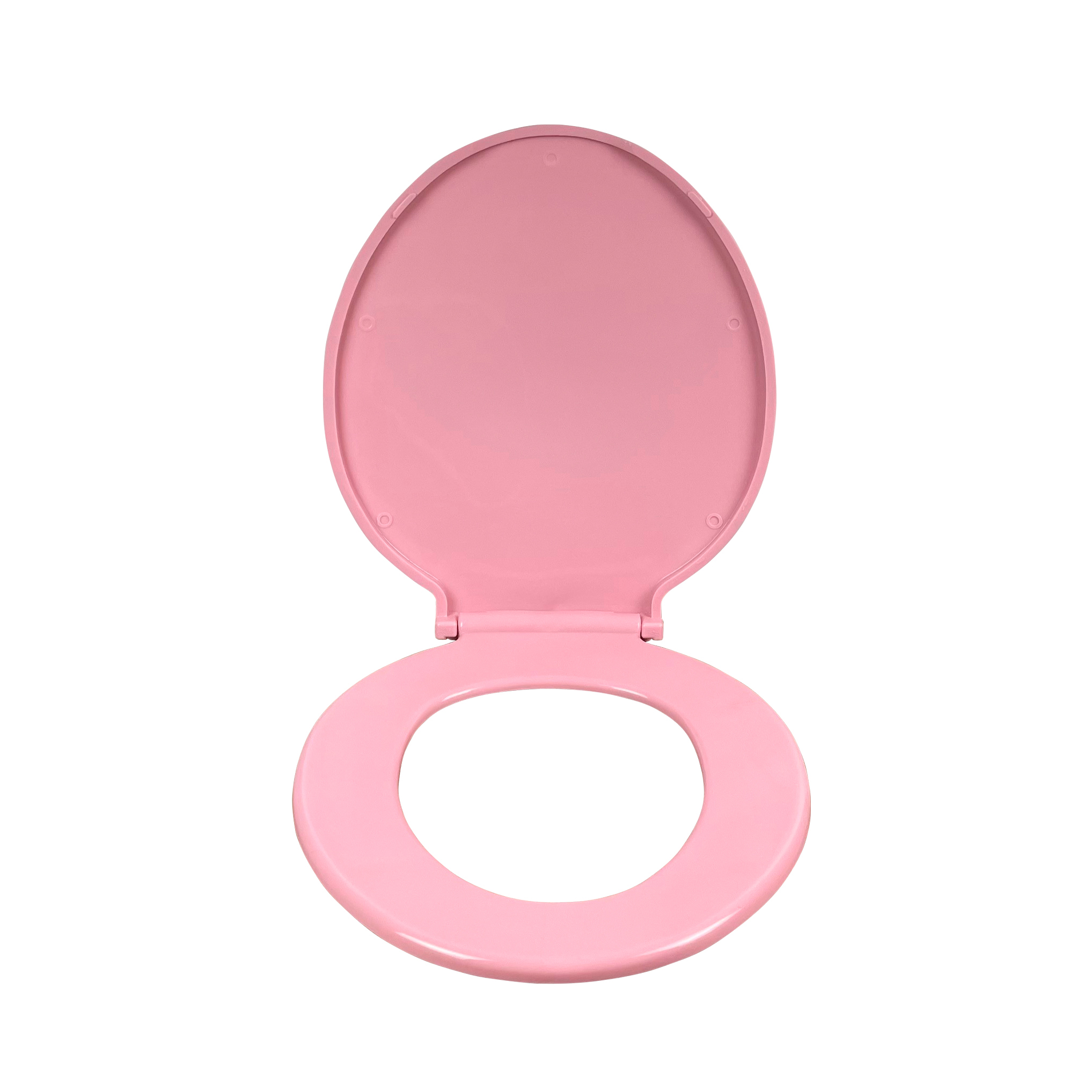Asiento de aro redondo color Rosado fabricado en polipropileno resistente, con bisagra plástica ajustable alargada. De fácil limpieza, larga durabilidad y peso de 1,2 kg