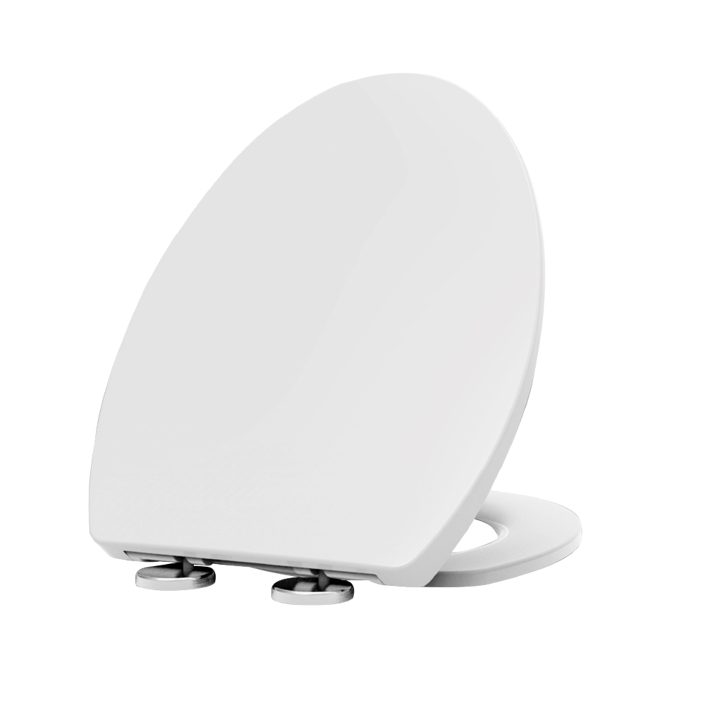 Asiento de baño elongado fabricado en urea de alta resistencia, material que ofrece gran durabilidad, higiene y fácil limpieza.