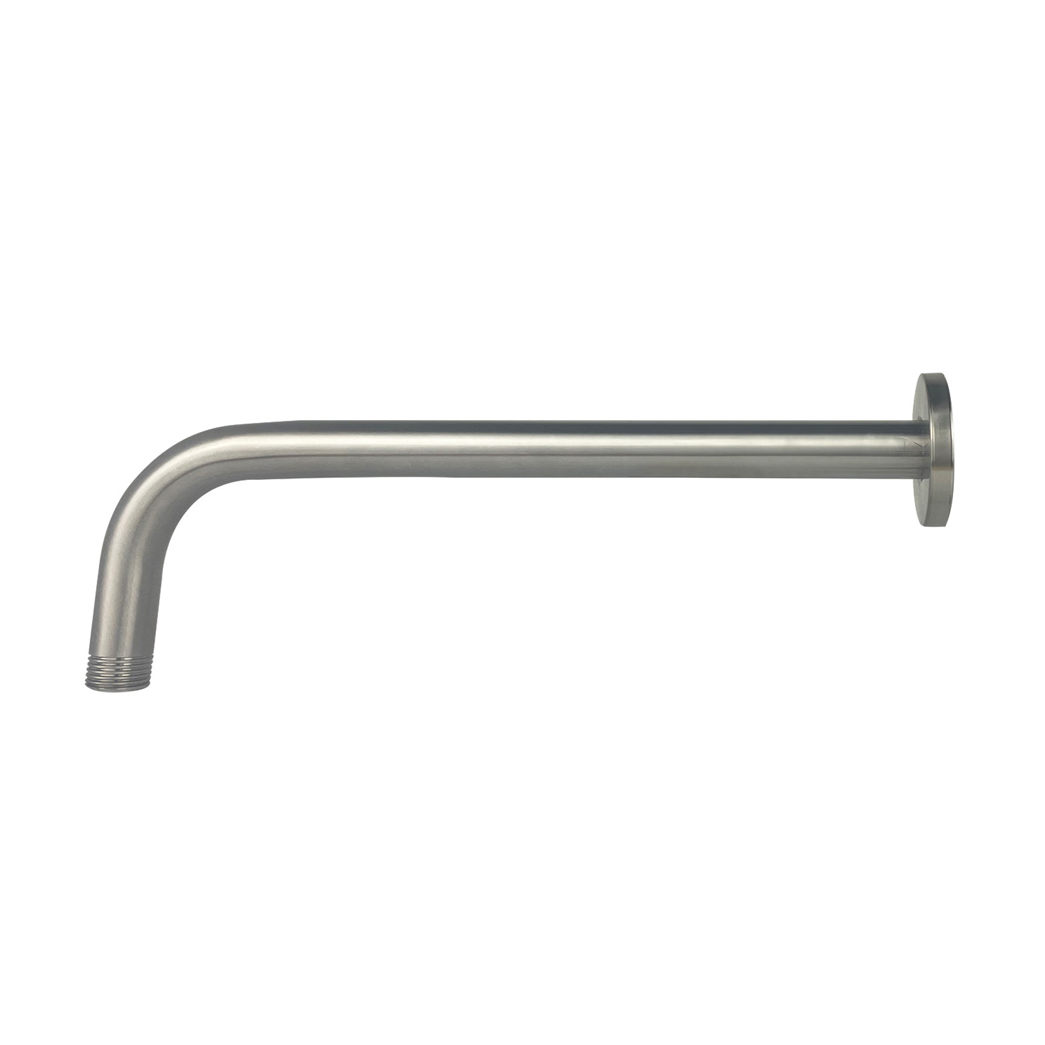 Brazo de ducha mural fabricado en acero inoxidable con acabado satinado. De alta resistencia y fácil instalación, cuenta con conexión estándar ½” HE, ideal para platos de ducha modernos.