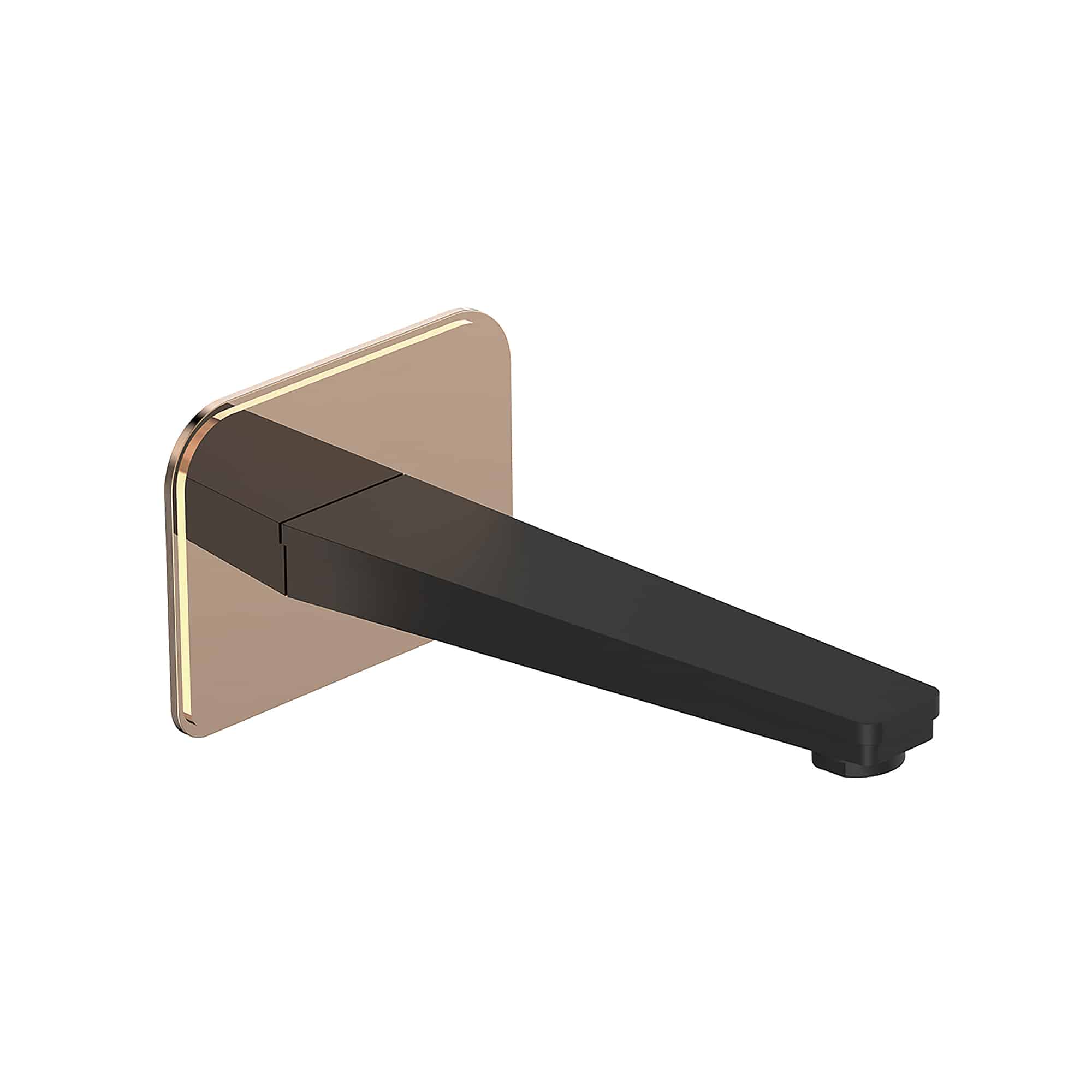 Caño de llenado de tina fabricado en latón macizo con acabado negro mate y embellecedor color cobre brillante para grifería empotrada con doble función. Con caño extra largo, aireador NEOPERL®, resistencia a la corrosión y a huellas digitales, ofrece estilo, durabilidad y fácil limpieza.
