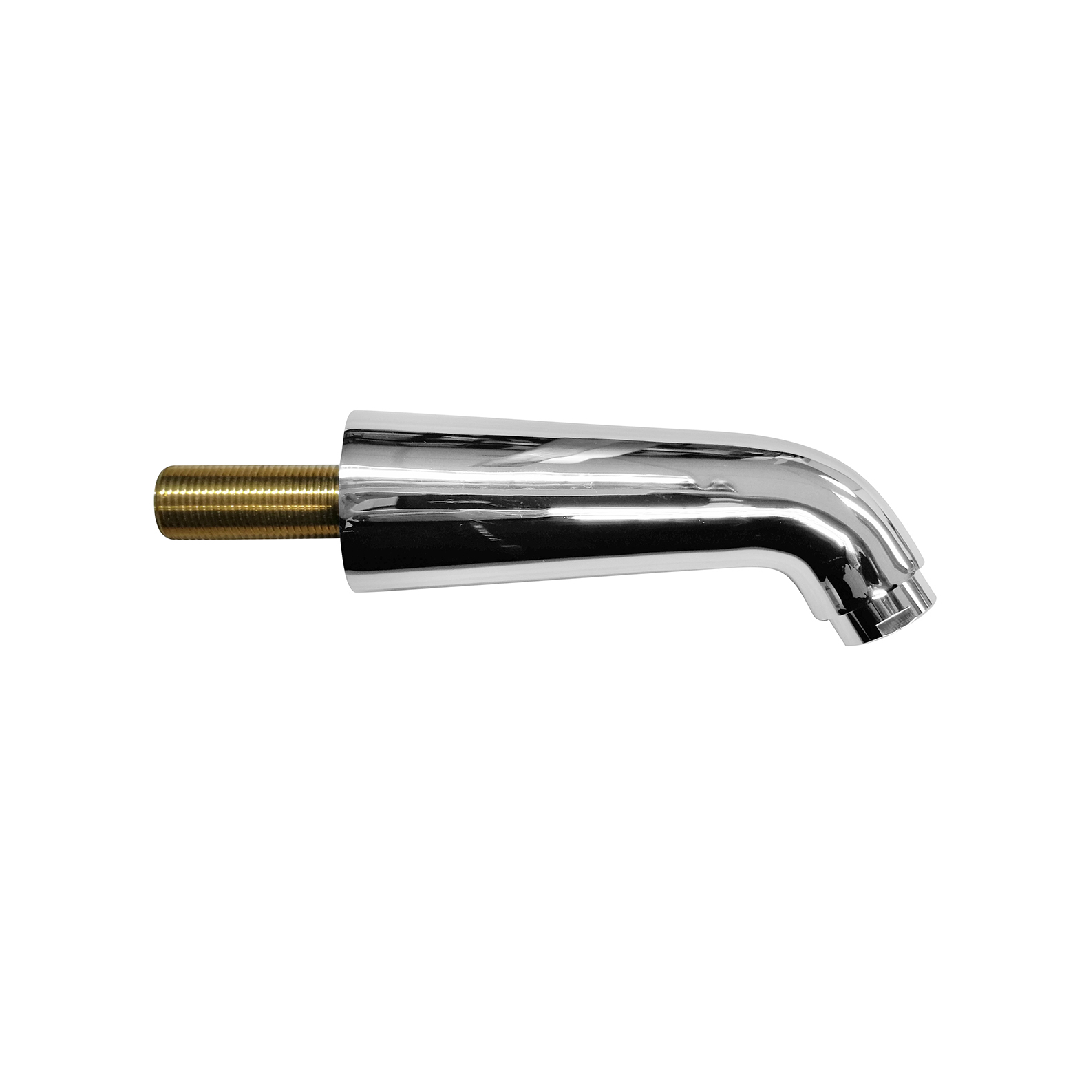 Caño de latón cromado con acabado brillante, diseñada para muros de mayor grosor gracias a su rosca larga. Resistente, duradera y de alta calidad.