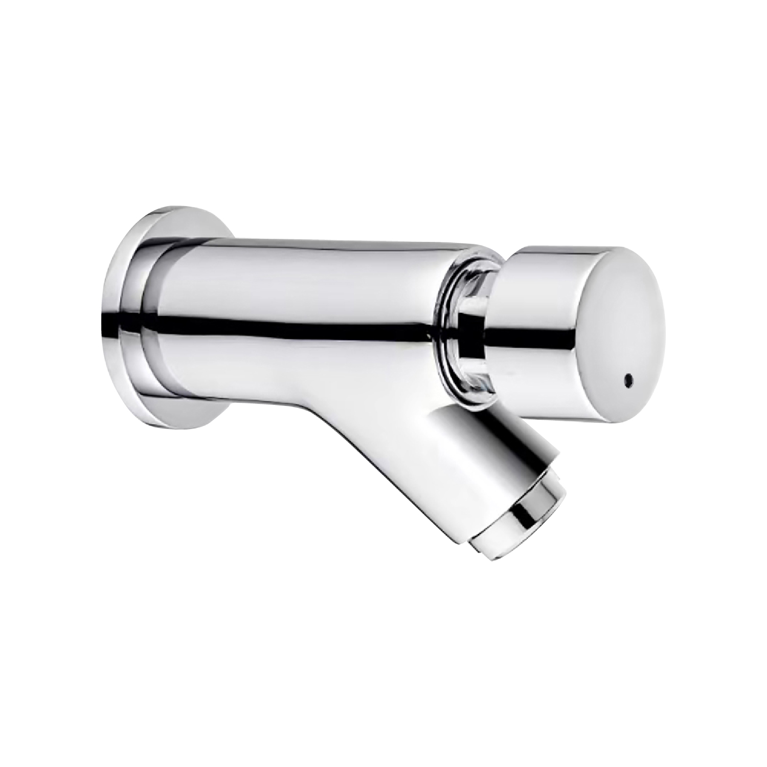 Su cartucho temporizado ajustable permite configurar un tiempo de operación de 7 ± 2 segundos, optimizando el consumo de agua sin afectar la experiencia del usuario. Además, su diseño para instalación a muro lo hace ideal para lavamanos en espacios reducidos o de alto tránsito.