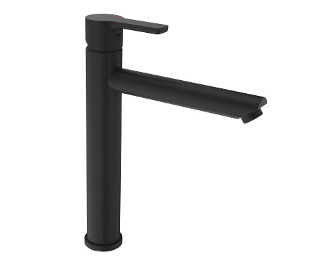 Grifería de ahorro de agua fabricada en acero inoxidable SS304 con acabado negro mate. Apertura en frío, conducción libre de plomo y cartucho cerámico de 35 mm para mayor durabilidad y precisión.