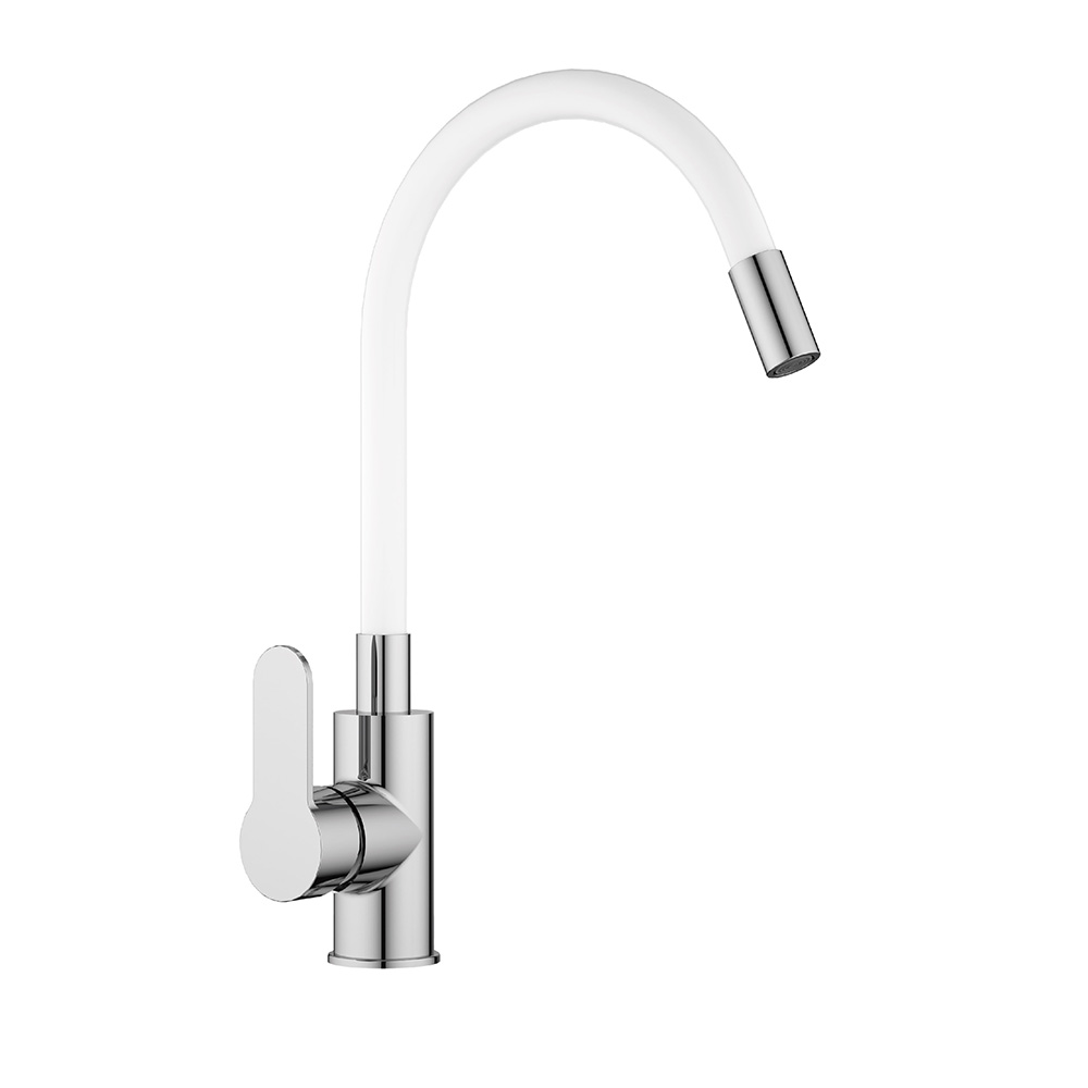 Grifería para lavaplatos articulada fabricada en metal cromado con acabado brillante, libre de plomo y certificada para ahorro de agua según norma NCh 700-2011. Incluye caño de caucho flexible, cartucho cerámico de 35 mm y aireador para un flujo silencioso y confortable. Viene con 2 flexibles vinílicos de 40 cm.
