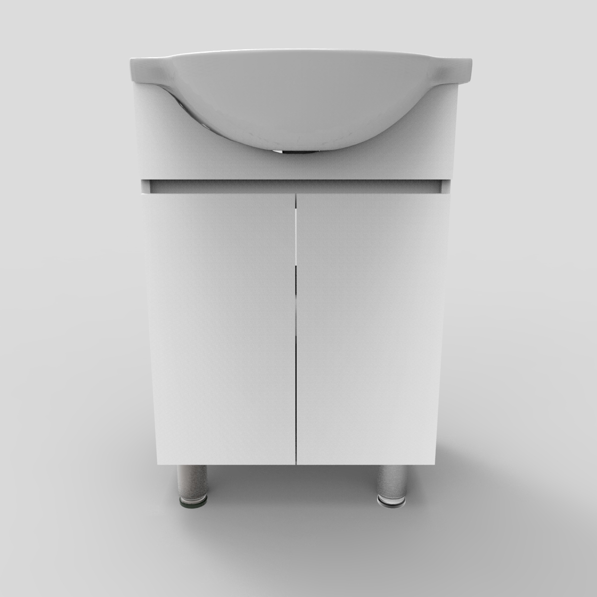 Mueble vanitorio a piso de melamina 15 mm con dos puertas, repisa interior y bisagras cierre suave. Incluye cubierta de cerámica sanitaria con rebalse, apta para grifería monomando o monoblock. Diseño resistente, moderno y funcional.
