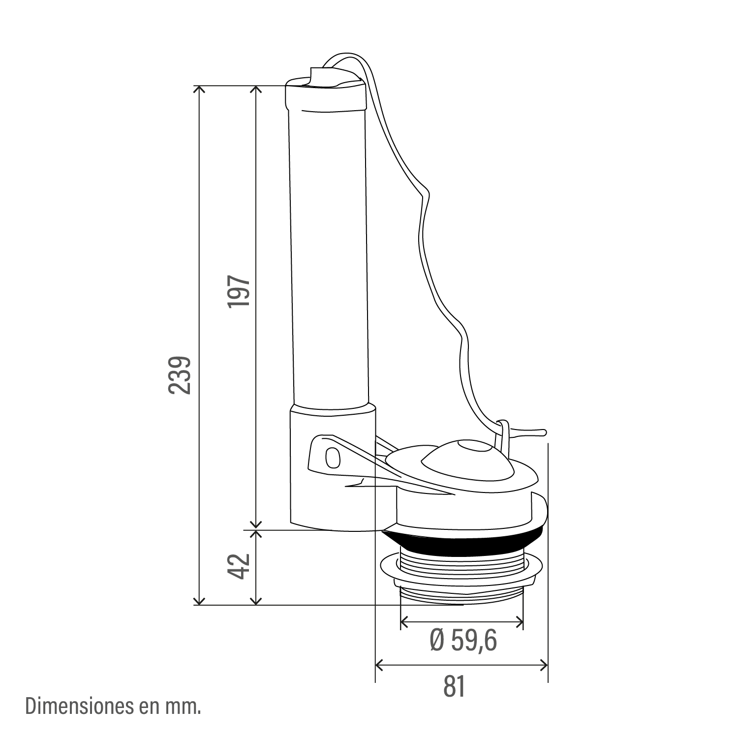 • Válvula de descarga para sanitarios de 2 piezas con descarga simple (y no doble descarga)